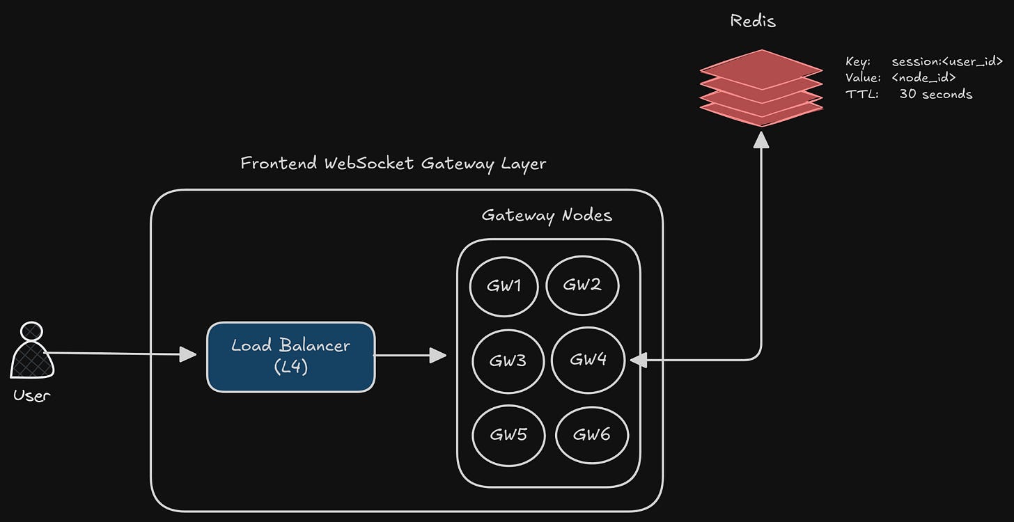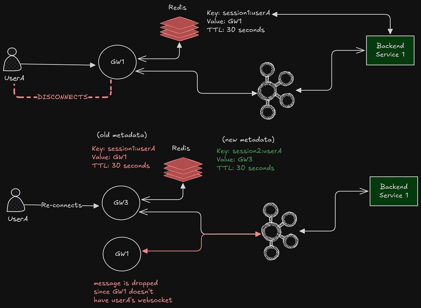 Lets say we want to send message for user b. The backend reads from redis that user b is connected to gateway node 1. But it uses hash of user b as partition key to dispatch the message . How is the information from redis store used here ? Doesn’t